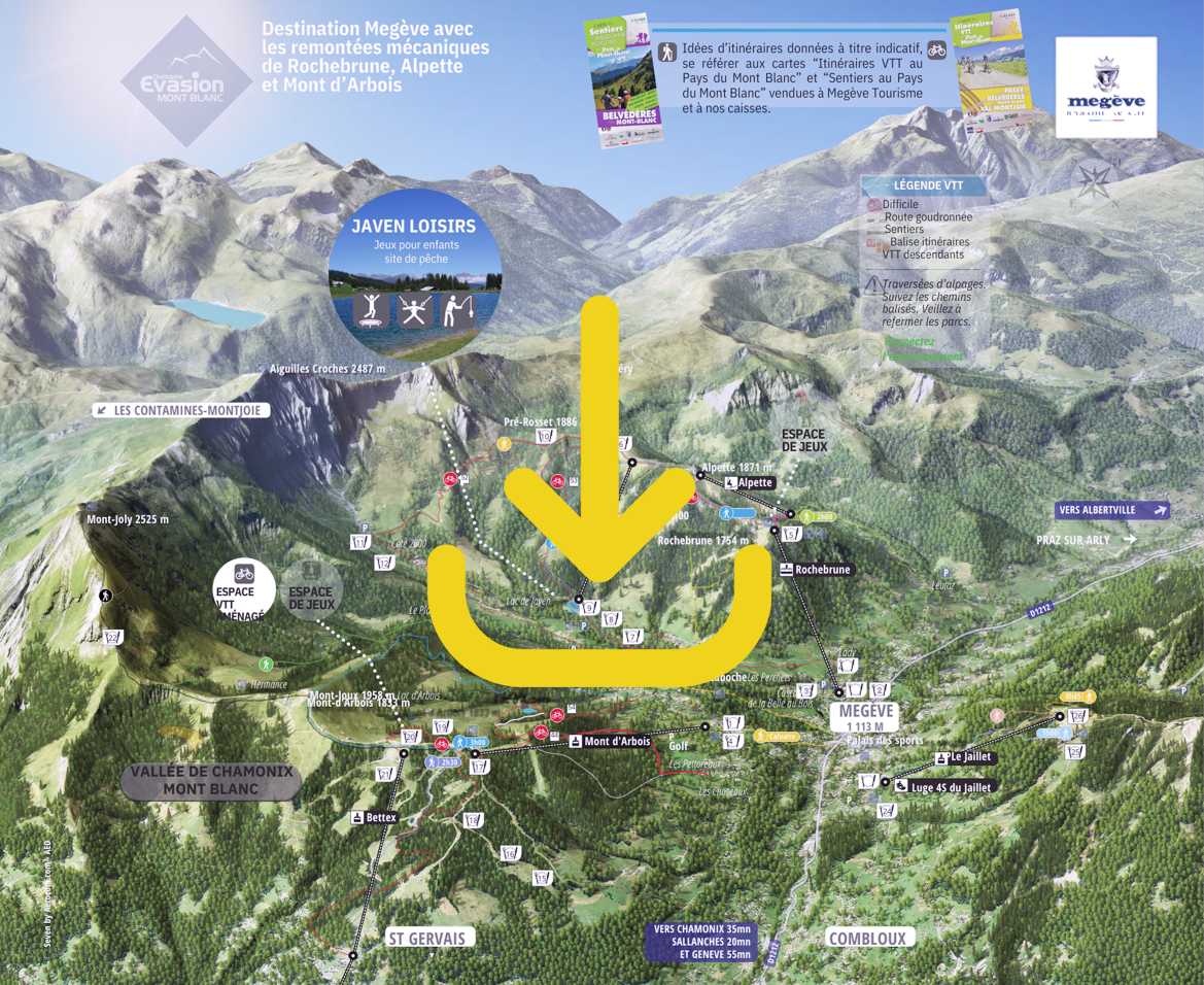 These route ideas are given for information purposes only, refer to the “Trails in the Pays du Mont Blanc” and “MTB Routes in the Pays du Mont Blanc” maps sold at Megève Tourisme and at our ticket offices.