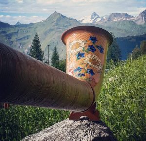The Alpine horn was originally used by shepherds to communicate remotely in the mountains. Made of spruce, the alpine horn is the musical instrument symbol of the Alps.