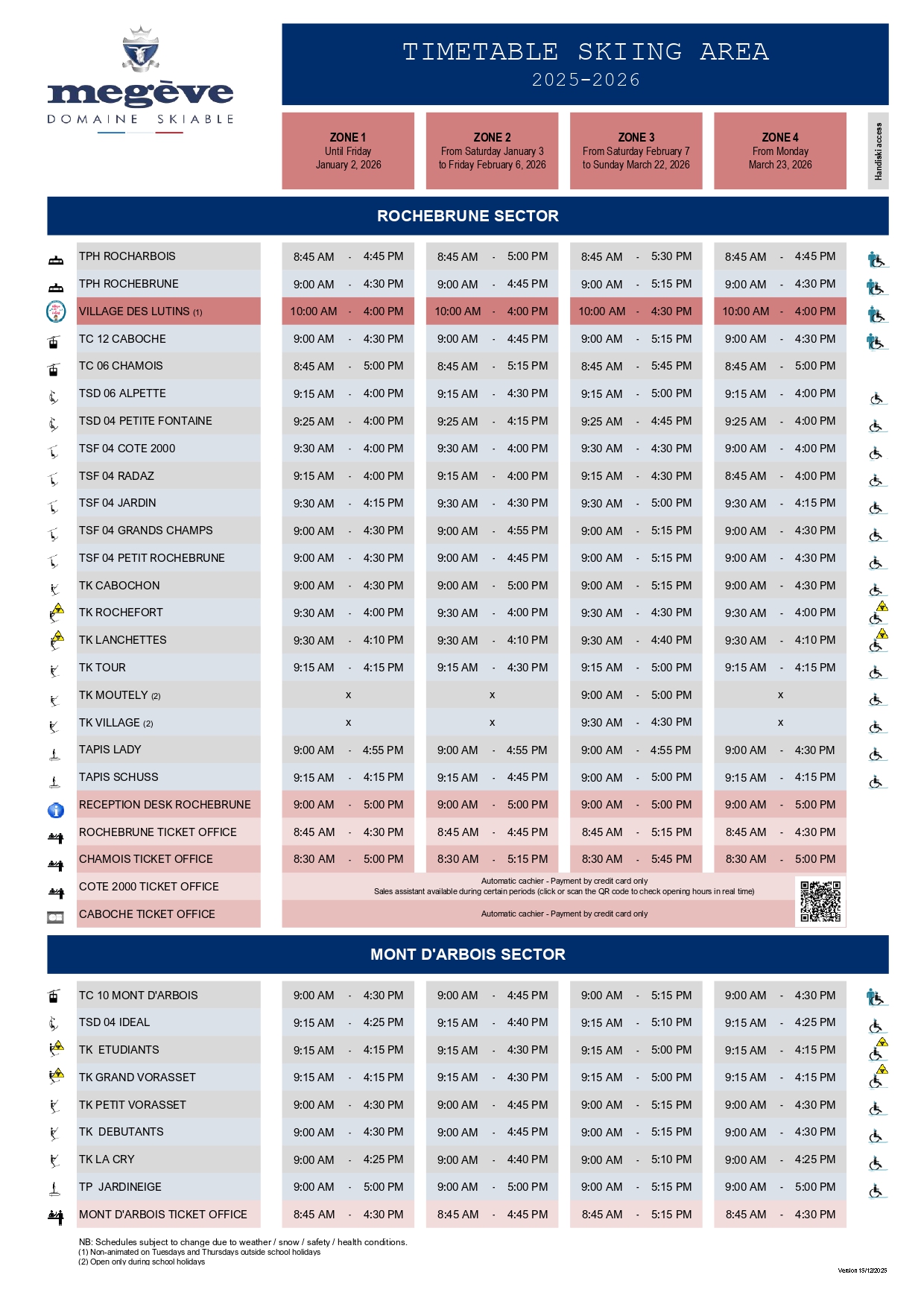 On this page you will discover the key information that will allow you to make the most of your stay in the Rochebrune and Mont-d’Arbois areas ! Our teams work regularly on devices to make skiing accessible to all, we remain at your disposal to take your comments into account !